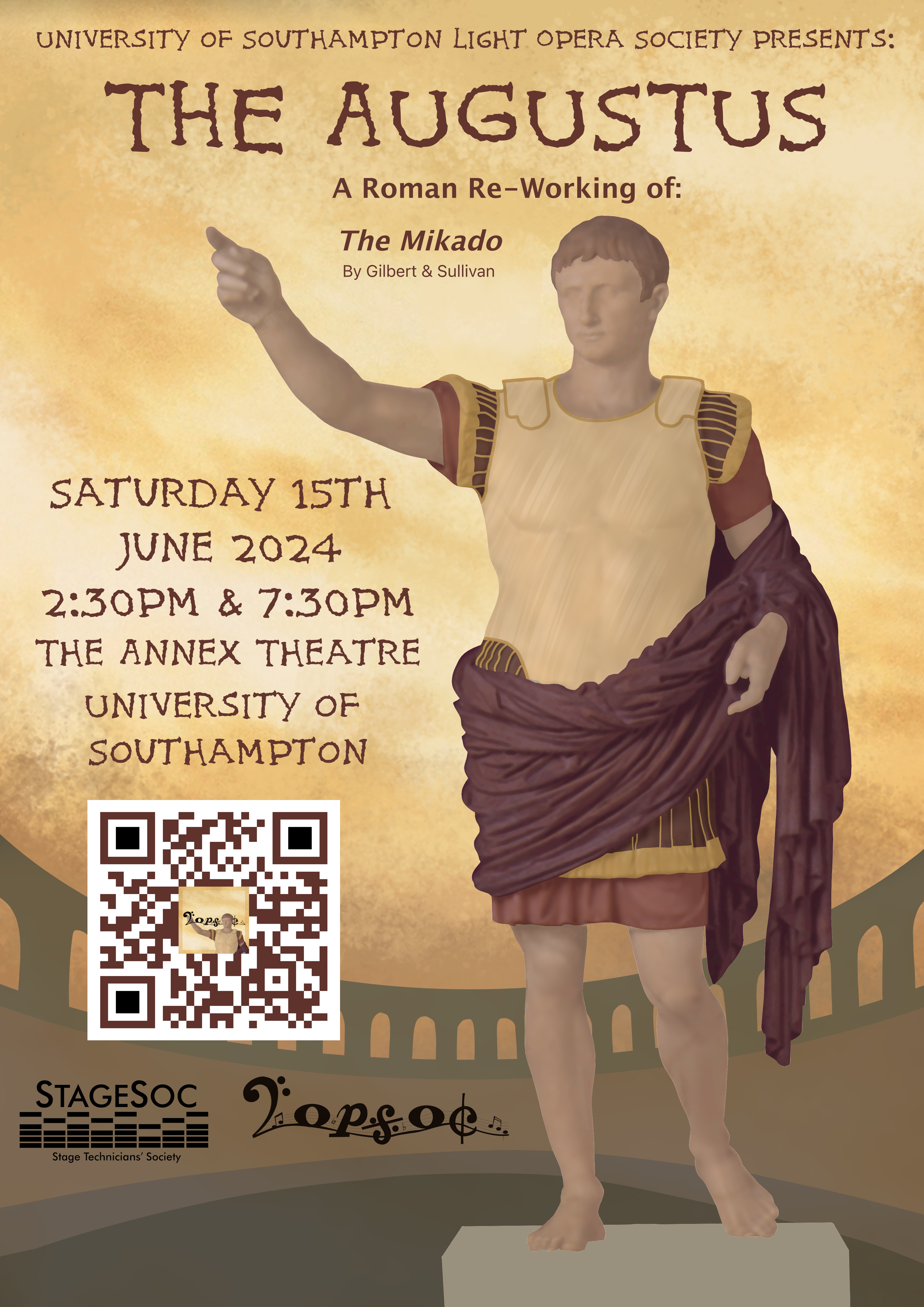 LOpSoc brings you an Ancient Roman re-imagining of Gilbert and Sullivan’s most popular comic opera the Mikado. The Augustus has decreed that his son Quintillus must marry the elderly Agrafa. However Quintillus is in love with Ilium so disguised as a musician he runs away to Misenum to be with her only to discover that she is about to be married to her guardian Cato, the lord High Executioner. Meanwhile, Cato needs to find someone to execute asap, otherwise his own head will be on the block.